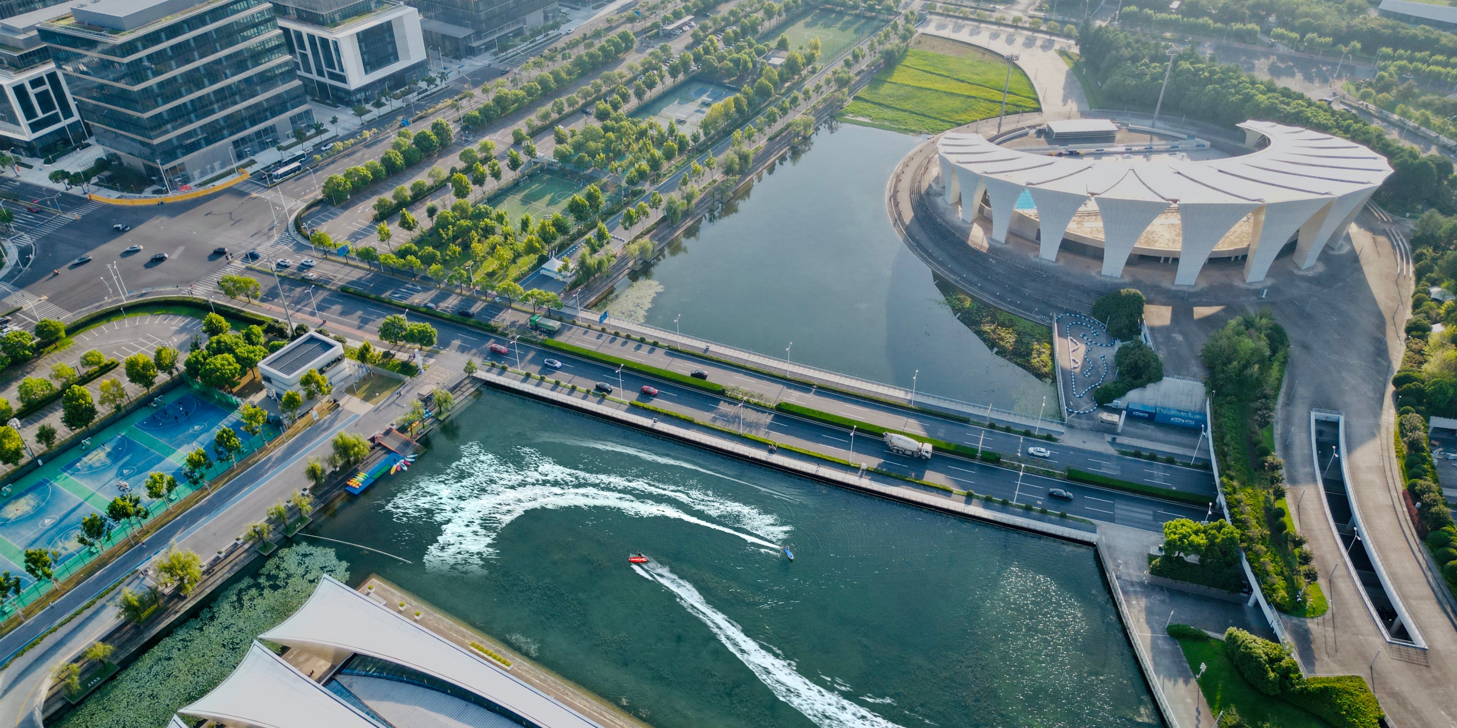 Moovi collabore avec l'Oriental Sports Center. Lancement des ventes des parcours « Moovi Surfing Club Urban Artificial Wave » en centre-ville. Ce centre sportif haut de gamme est l'un de ses plus beaux atouts. L'extérieur du bâtiment évoque des vagues qui s'élèvent couche par couche, s'étendant jusqu'à la surface de l'eau, plongeant dans le monde sous-marin.