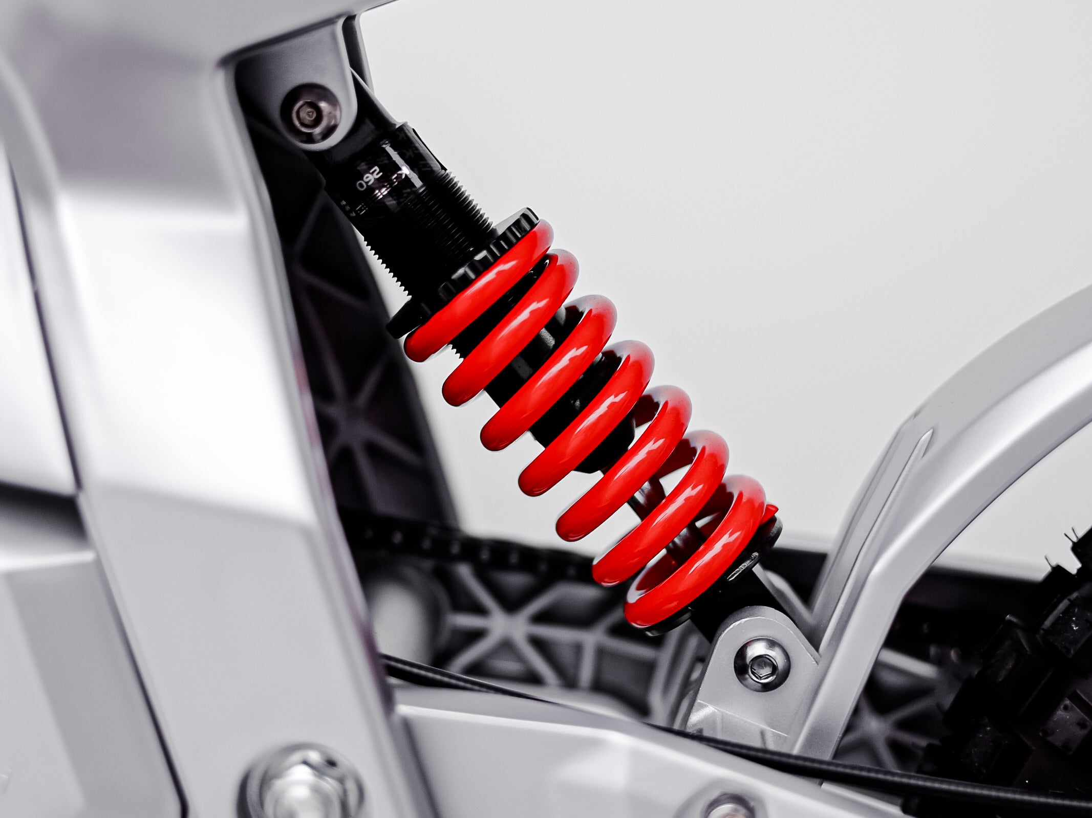 Moovi E-Motorcycle showcases a new design with a streamlined body, enhancing stability and the avant-garde Moovi aesthetics.