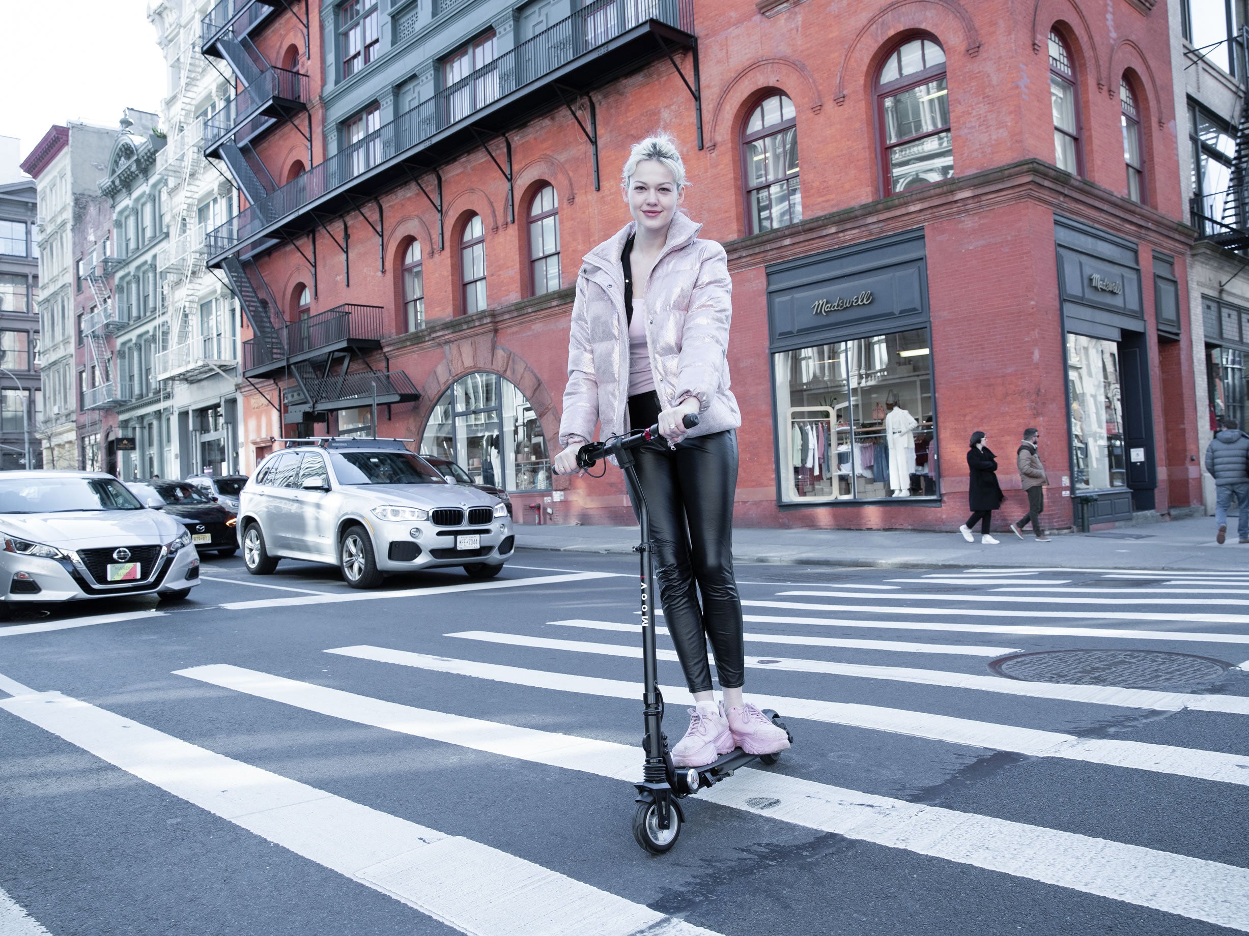 Moovi electric scooters are compact and lightweight, with quick-fold capabilities. They enable elegant, stylish travel.